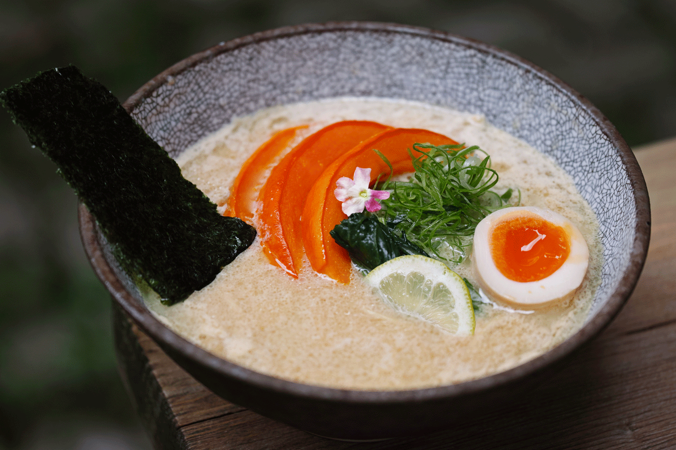 Crafted from free-range Slovak chicken, our kotteri-style ramen PAITAN features a creamy, collagen-rich broth, delivering an intense umami experience. For a lighter option, our tanrei-style ramen blends clear chicken broth with Japanese dashi. Alongside these classics, explore our Specials-from vibrant vegan ramen to bold, spicy creations.